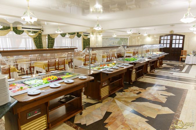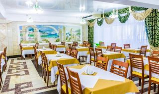 Гости санатория могут рассчитывать на трехразовое питание в общей столовой. Для малышей предусмотрено детское меню.